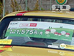 リヤーウィンドウに大きくメッセージを掲載。通行人のみならず後ろを走るドライバーの目線の高さなので潜在的な認知度のアップに効果的です。 ■実施エリア/福岡都市圏及び全九州エリア ■掲出台数/100台〜 ■掲出期間/1クール(3ケ月)