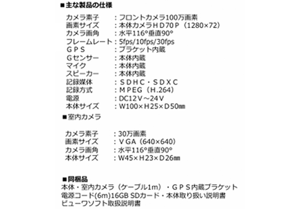 - 車内・車外を録画して事故後の対策はもちろん、事故未然防止にも繋がります。